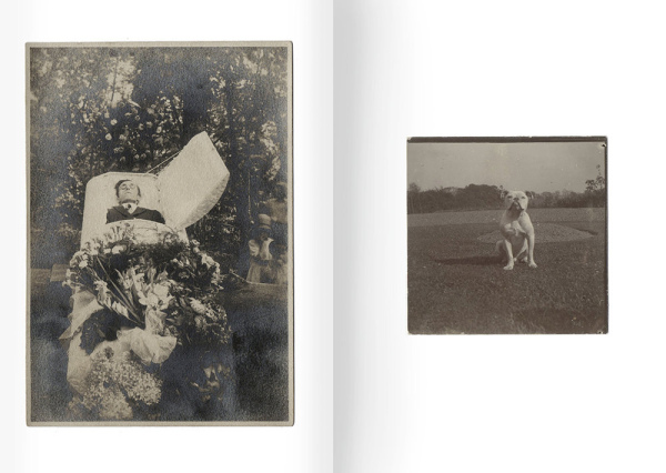 « Un jour, il a fallu ranger. Par hasard, photos de chiens et post mortem se sont retrouvées dans la même boîte. La cohabitation m’a frappé. Elle créait des vis-à-vis improbables en rapprochant deux thèmes aux antipodes. Les toutous veillent sur les morts et deviennent le miroir du drame qui se joue en face. Ils sont la part sentimentale du livre, et l’on décèle dans leur regard la gravité que la mort révèle. » Philippe Jusforgues